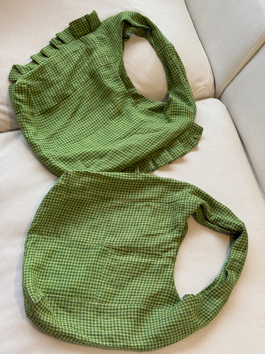 Frilly Patchwork Tote Bag in Green Gingham