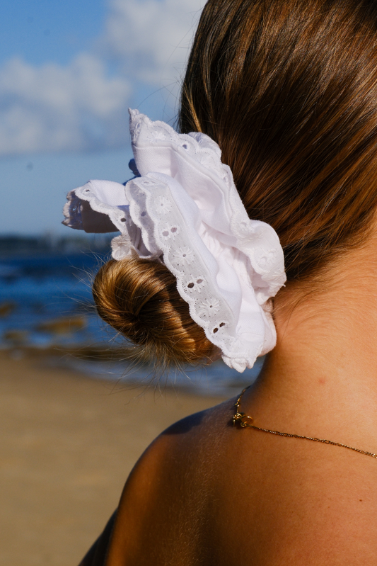 White Lace Linen Scrunchie