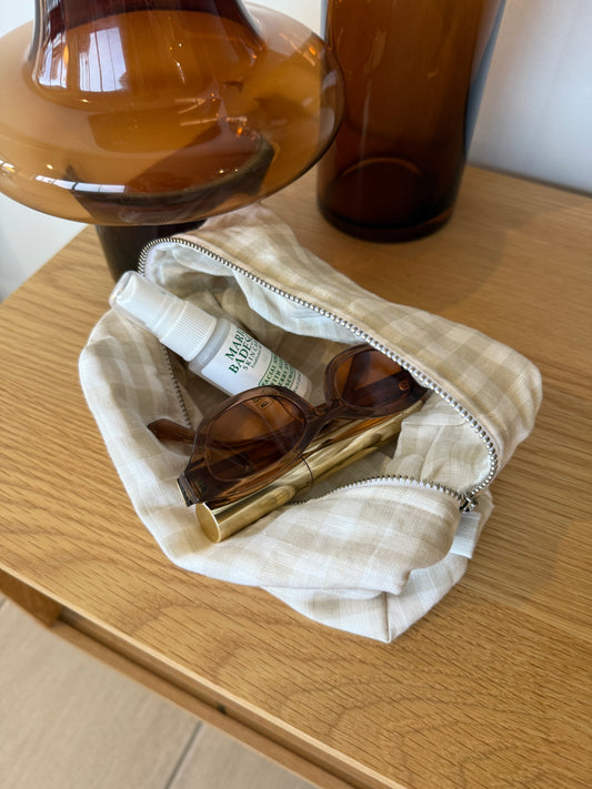 Beige Gingham Cosmetic Bag