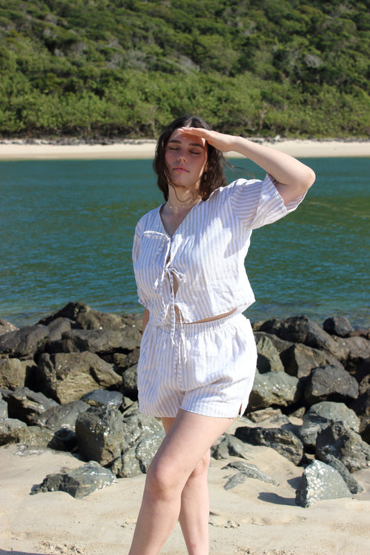 Libby Shorts in Beige Stripe