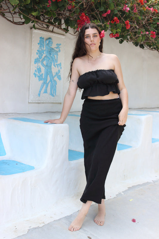 Cora Bias Cut Maxi Skirt in Black