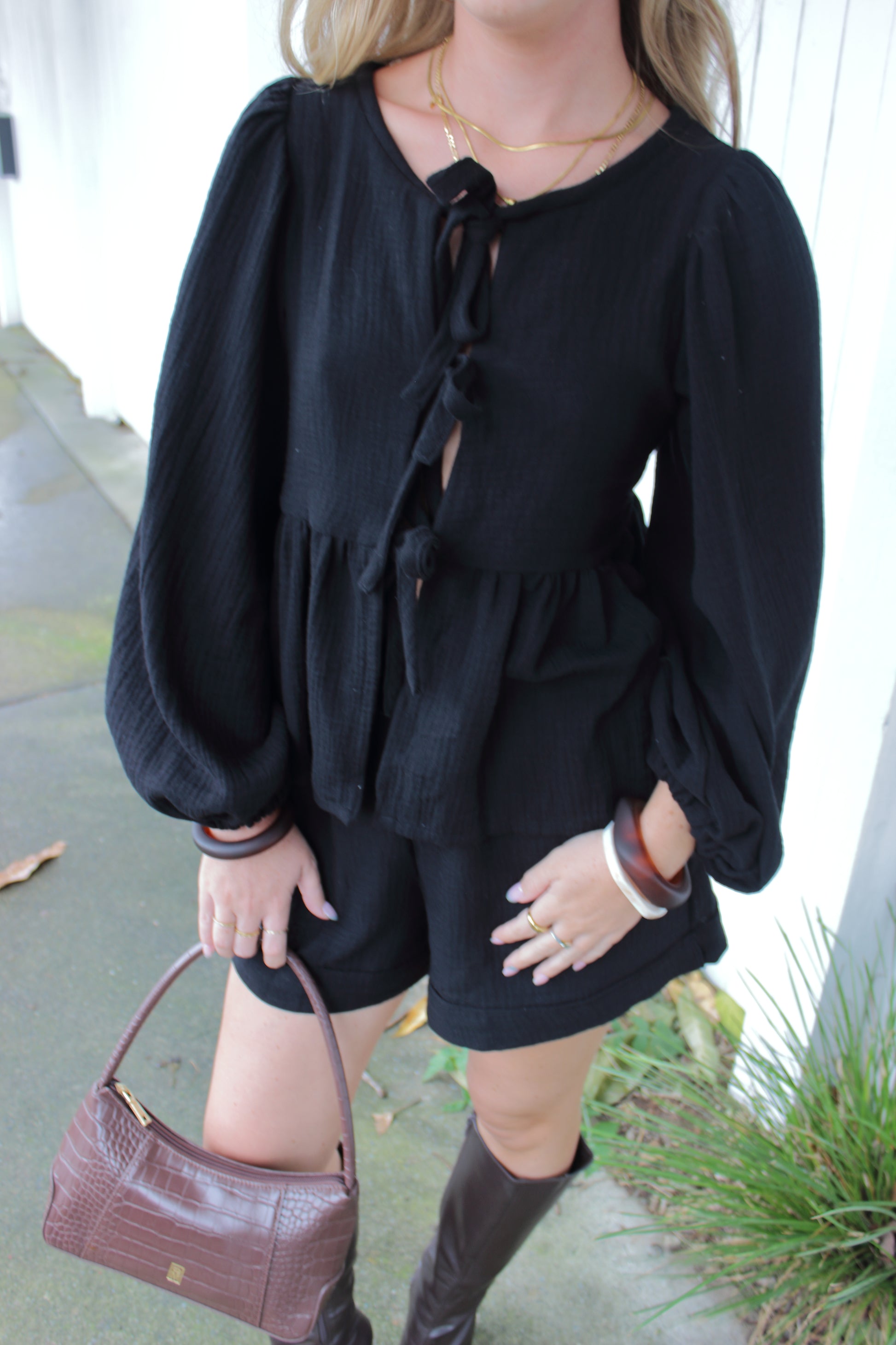 Cosy up this winter in our Amara Blouse! Made from our signature organic cotton double gauze that we know and love for its breathability and softness. The top features a gorgeous flowy silhouette, front ties to close, long puffy sleeves and a gorgeous lower frill, making it stand out for an everyday piece. A fun little bonus is that this top was designed to be worn both ways, making it versatile for all occasions!