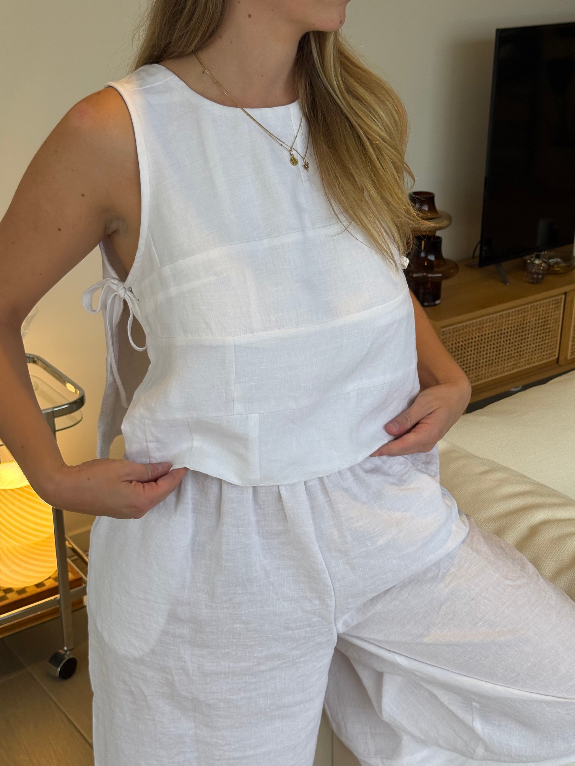 Meet Bella, the perfect everyday top! This piece was designed with the intention to repurpose our left over fabrics and off cuts while maintaining our timeless design ethos. The Bella Patchwork Top features boxy fit, front darts for shaping, double lined with the same linen and bias taped side ties to allow for adjustability. Pair with your favourite Harper pants or shorts for the ultimate comfortable everyday look.