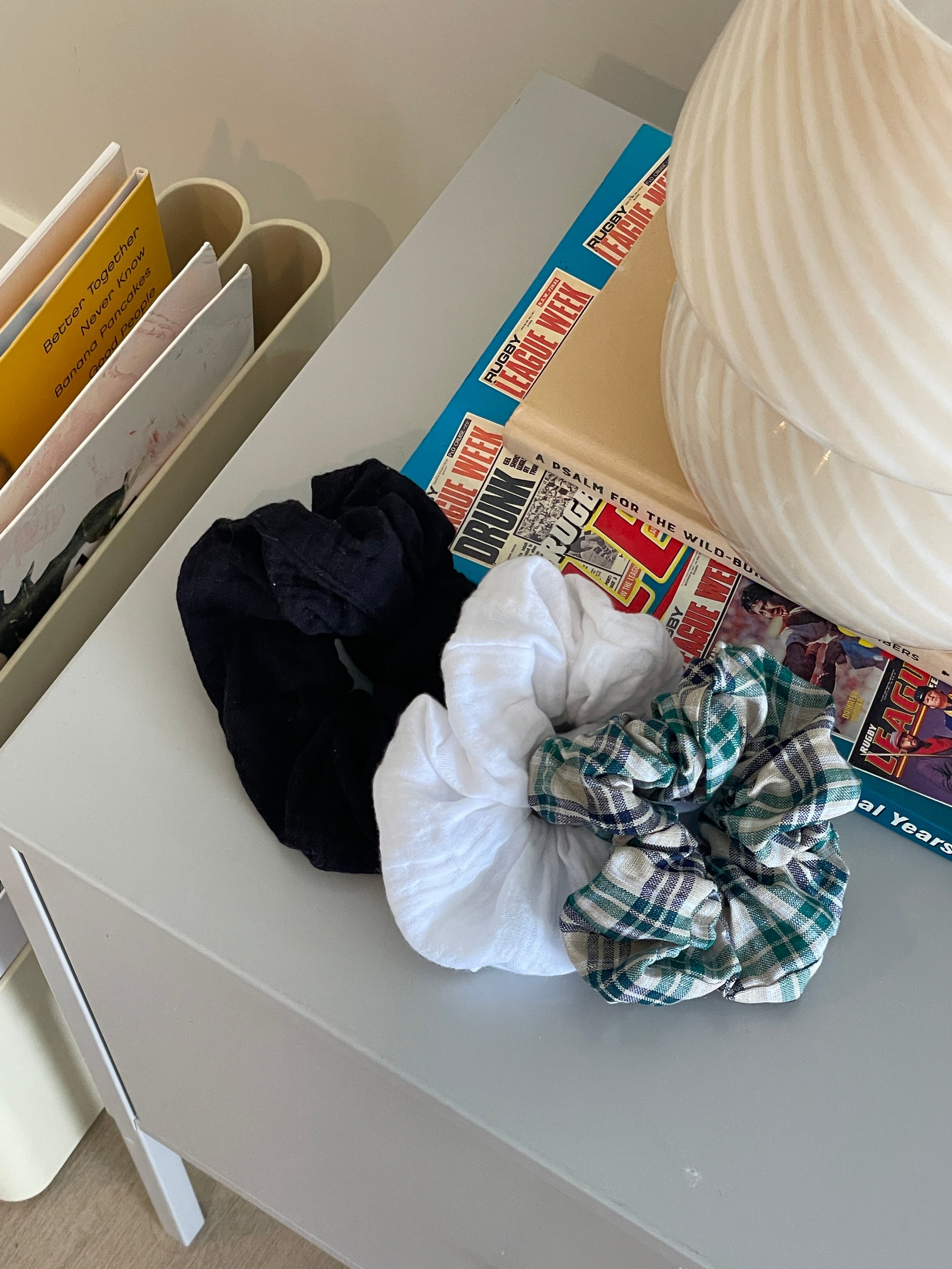 Crafted from leftover fabric scraps, these scrunchies are the ideal accessories to complement your In May wardrobe.